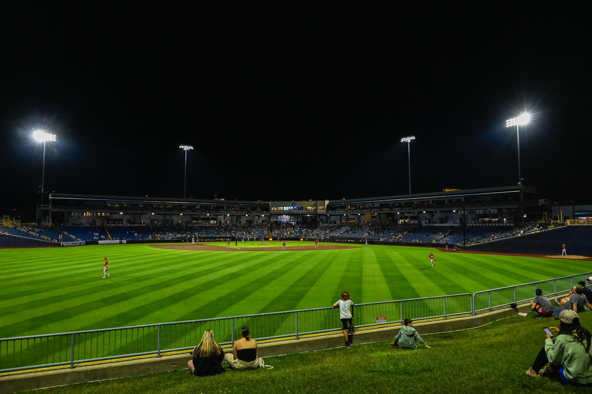 Through the space underneath the scoreboard, we watched as the Captains put the finishing touches on their 5-3 win over the TinCaps. |